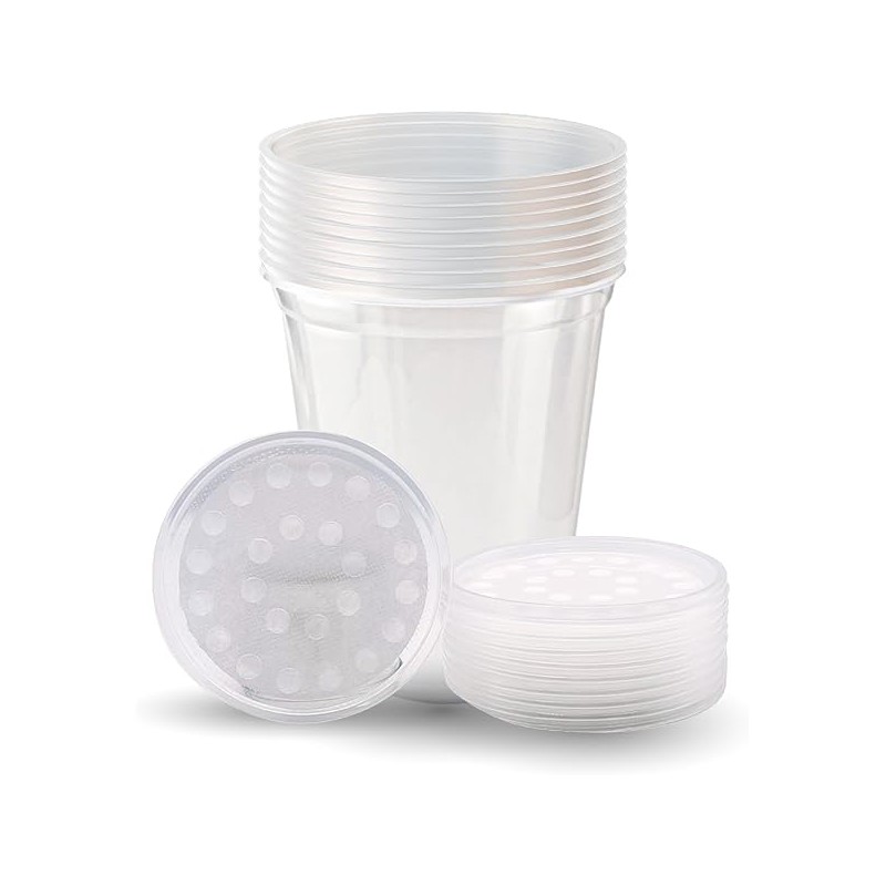 Snout and Shell 32 oz Deli Cup and Fabric Vented Insect Feeder lids by Snout & Shell - Pack of 10 cups and lids