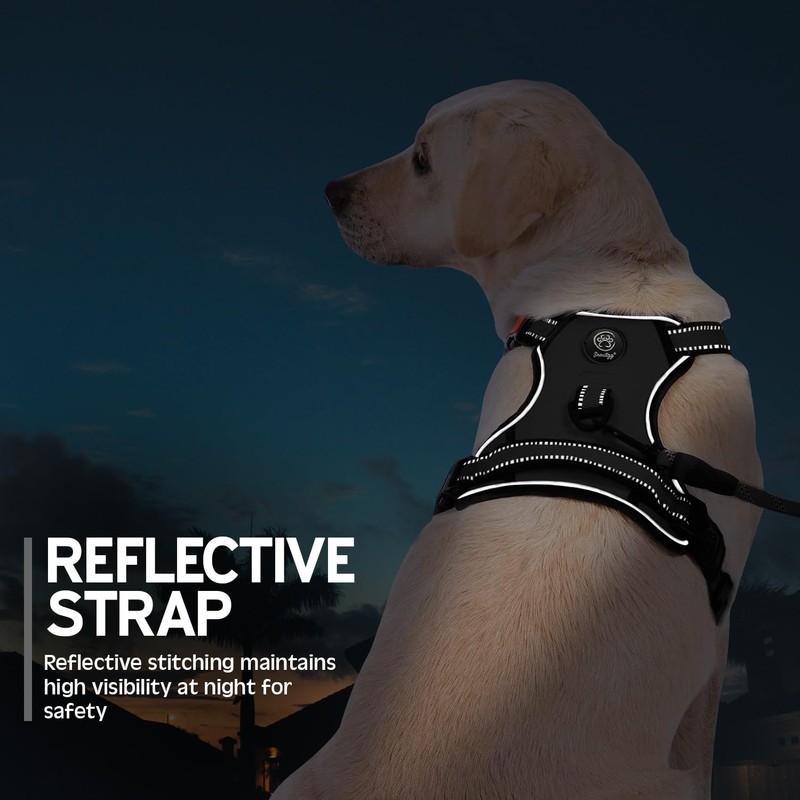 - 🐶 SAFE & COMFORTABLE -- We make sure your dog will enjoy the daily walk wearing our comfortable dog harness which is made of durable nylon oxford and padded with a soft cushion.