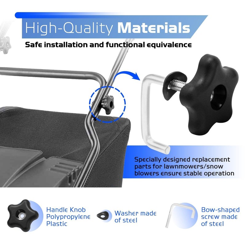 - 【Premium Materials】The handle knob is made of polypropylene plastic, the handle bolt is made of high-quality steel, and the gasket is made of high-quality metal, which is not easy to break, sturdy and durable. It is designed as a replacement part for lawn mowers/snow blowers to ensure stable operation.