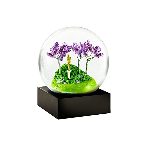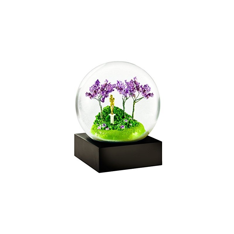 - Features lilacs in full bloom in a green garden complete with bronze sculpture.