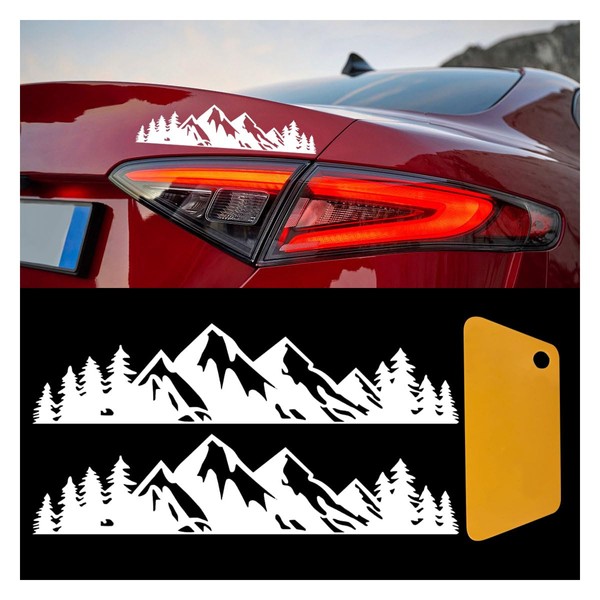 - 【Size & Package】: The sticker size is 7.76in x 2.25in, universal for all car models. Package contains 2pcs snow mountain tree stickers. There are two colors of black and white to choose from.