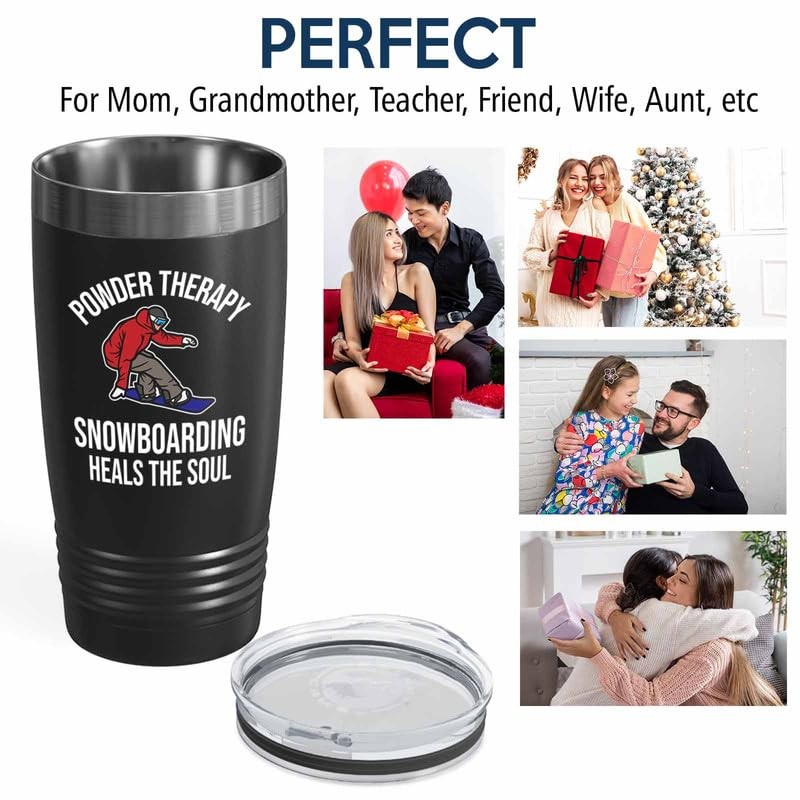 Snowboarding Black Edition Viking Tumbler 20oz - Powder therapy Snowboarding - Ski Snowboard Goggles Snowboarder Skiing Snowboarding Gift Skiers Hiking Mountain Snowboarding