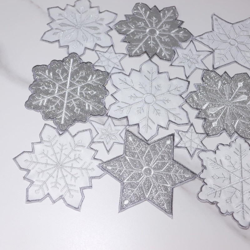 • SNOWFLAKE PLACEMATS:13×18 inches Rectangle Set of 4; Our Christmas snowflake theme placemats are crafted of 100% Polyester and features cut out silver sequins and white embroidered snowflakes