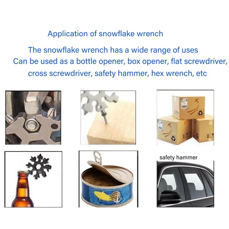 - Multiple uses of snowflake keys: This 18-in-1 snowflake key can be used to open beer bottles, open boxes, turn screws, secure skis, bicycles, toys and more. It is also suitable for outdoor activities such as camping, boarding, rescue, and can be used in different places.