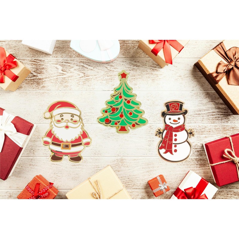 Snowman, Tree and Santa Claus Metal Pins with Stylish Finish for Backpacks, Hat, Scarf and Clothings,Holiday Accessories for Festivities, Interesting Design, Enhances Festive Atmosphere (Tree)