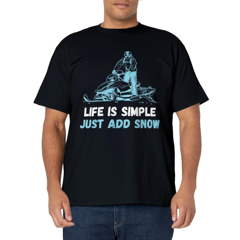 - This cool Graphic says "Life Is Simple Just Add Snow" and shows a snowmobile sledder. Ideal for winter sports lovers, motor sled riders, and snowmobilers who enjoy riding snowmobiles or snowmobiling a motor sled.