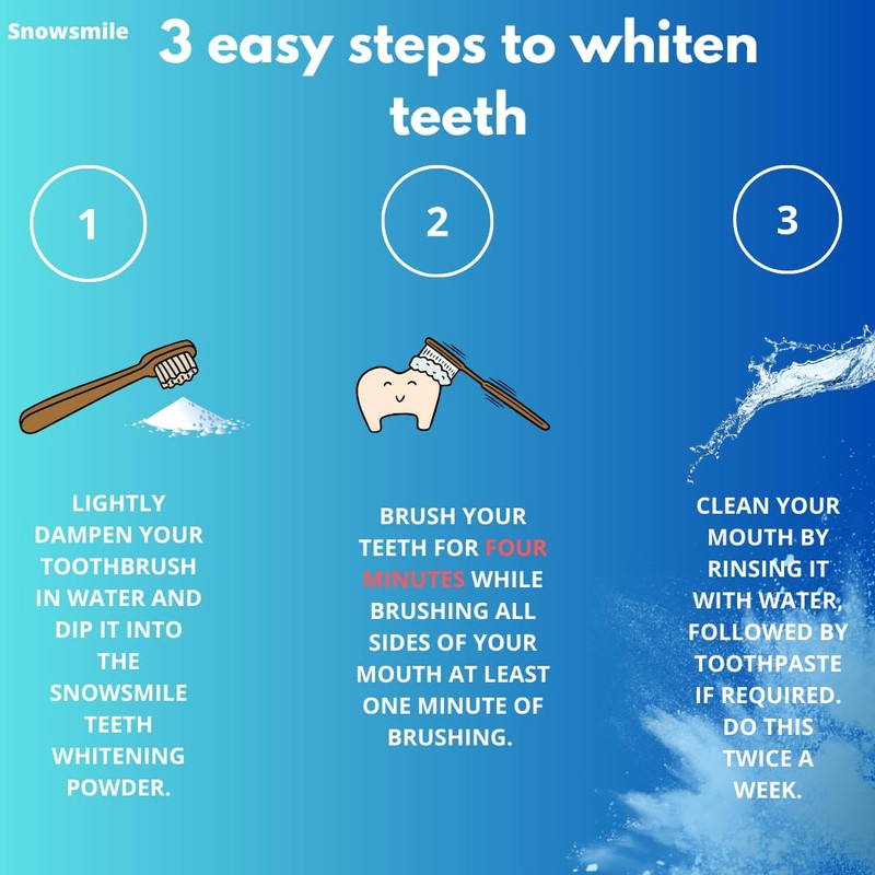 - Experience a gradual improvement to a brighter smile with Snowsmile Teeth Whitening Powder. Our dentist-approved formula is made to gently lift stubborn stains from coffee, tea, wine, smoking, and more over a few weeks. Get a brand new progressively whiter smile with each use!