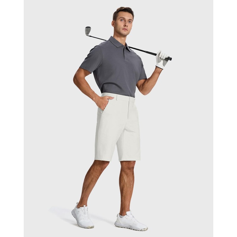 SNOWTEN Men's Classic Fit 11 Inch Golf Shorts Lightweight Quick-Dry Stretch Fabric with 4 Pockets for Hiking Casual Work Cream White 40