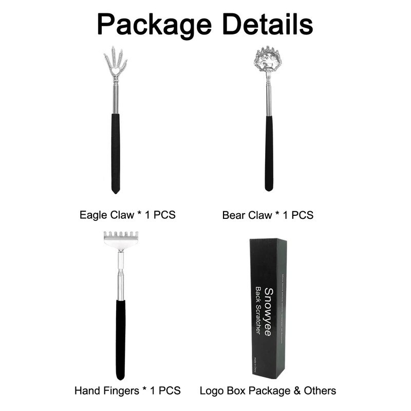 Snowyee Backscratchers, Back Scratcher for Women Men 3PCS Includes Bear Claw Hand and Eagle Claw kit Telescoping with Adjustable (Black)