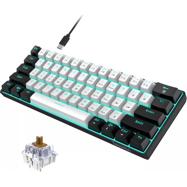 Snpurdiri 60% Wired Mechanical Gaming Keyboard (Black-White, Brown Switches)