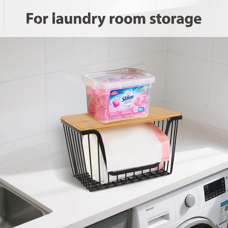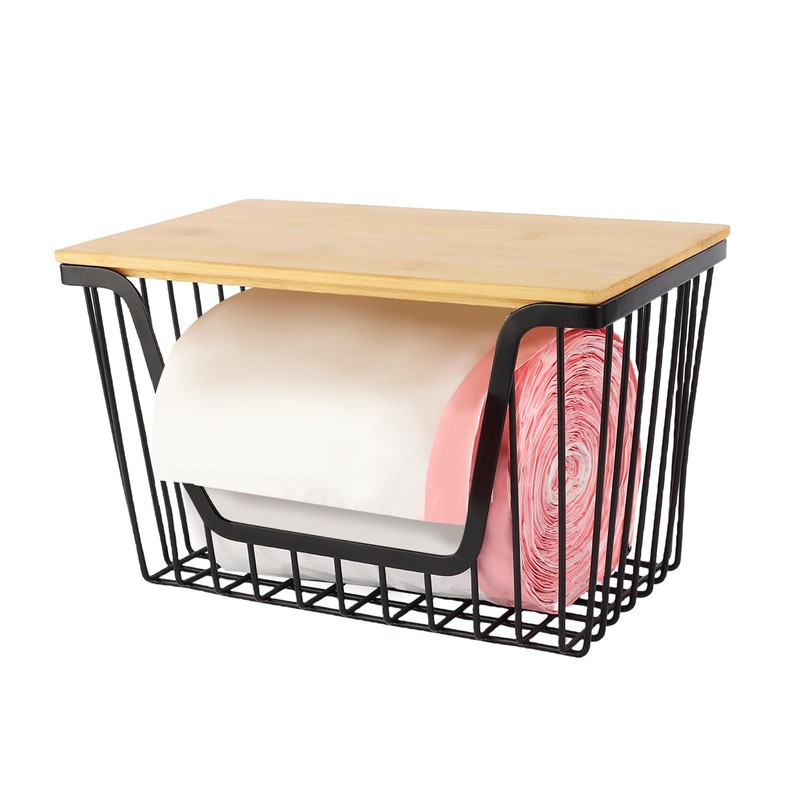 Snpwne Extra Large Trash Bag Holder With Bamboo Top,Trash Bag Dispenser Roll Holder for Kitchen Pantry Cabinet Counter Under Sink Laundry Organizing