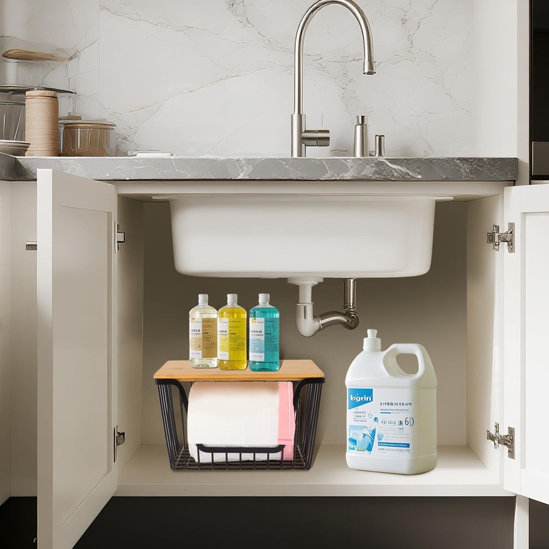 - 【Stackable Trash Bag Dispenser】Designed to be used under the kitchen sink to maximize the use of vertical space, and the card slot design prevents it from sliding off when moving.