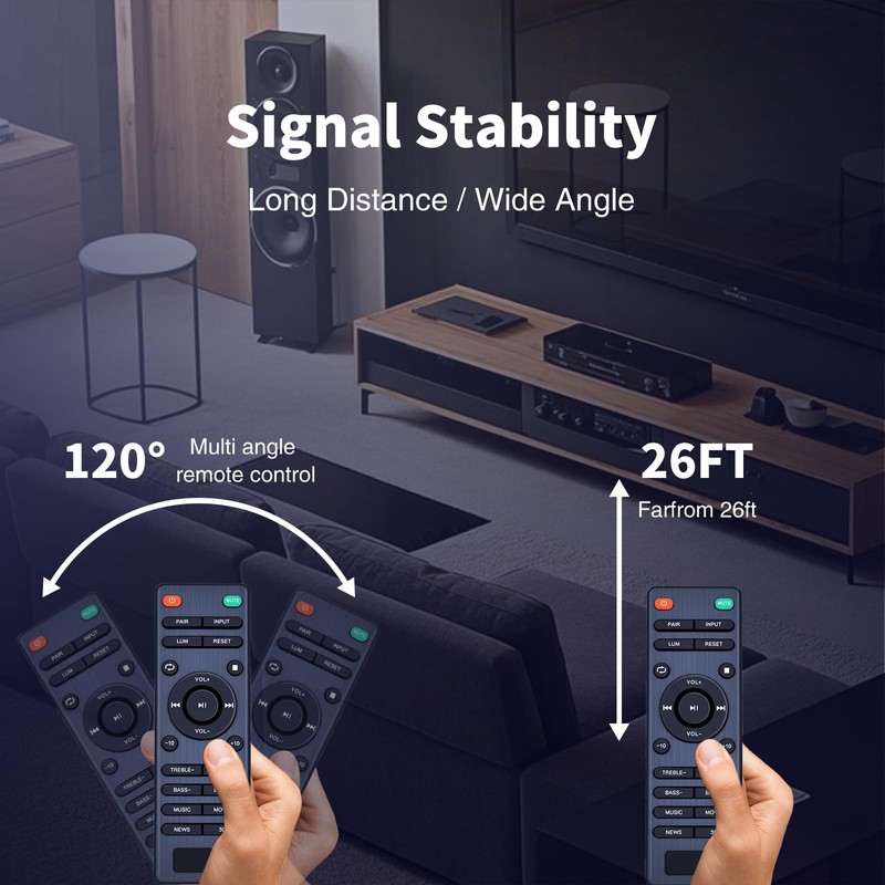 - High-Performance Remote with Reliable Signal:Engineered for fast response and strong signal transmission, this replacement remote outperforms worn-out or lost originals. The advanced infrared technology ensures smooth operation from up to 30 feet away, so you can control volume, bass, and sound modes without interruptions. No more missed clicks—just consistent, reliable performance.