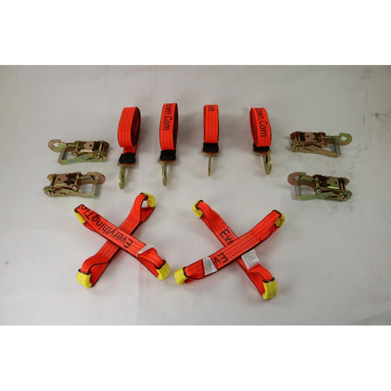 SnS 8 pt Kit 18' Orange TECNIC Webbing Rollback / Flatbed Car TieDown w/ Snap Hook