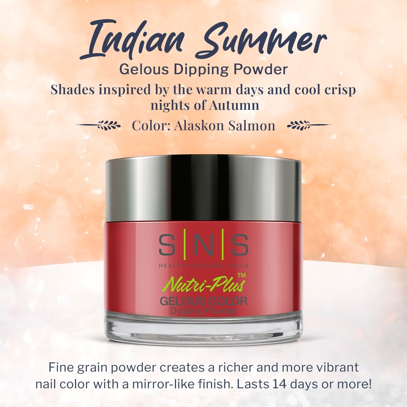 • Warm Tones: SNS Nail's Indian Summer collection is our timeless color palette that is made with fine grain powder that helps create a richer and more vibrant color. Our skin-friendly, low odor formula dries instantly and creates a stunning, mirror-like finish without needing UV light. Color: Alaskan Salmon (pink)