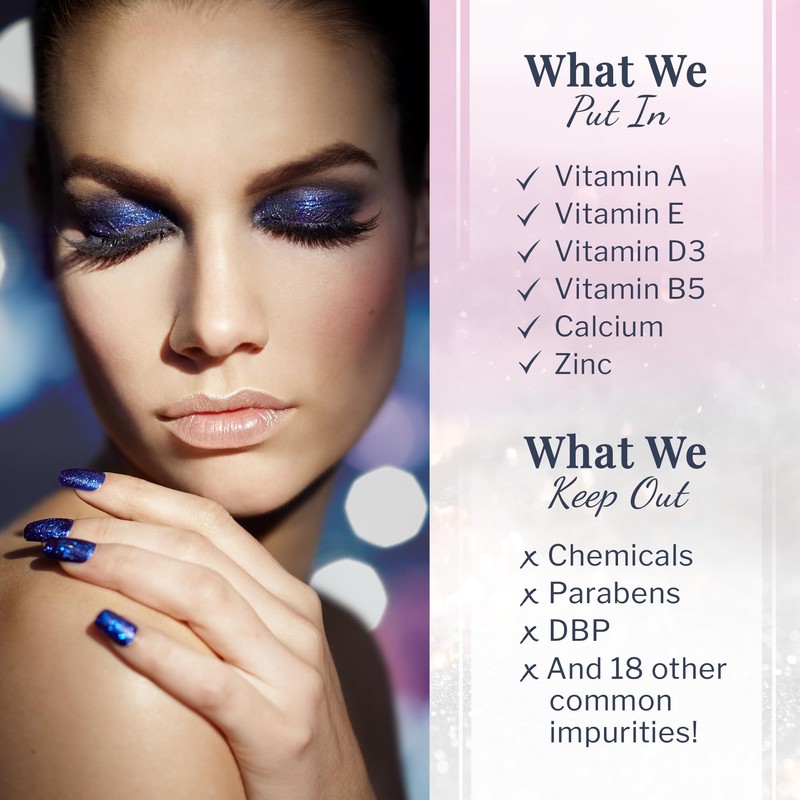 - 10 Free: Our dip powders and adhesives are formulated to be 10 Free, meaning free from a variety of harsh chemicals. We are also enhanced with ingredients to support nail growth