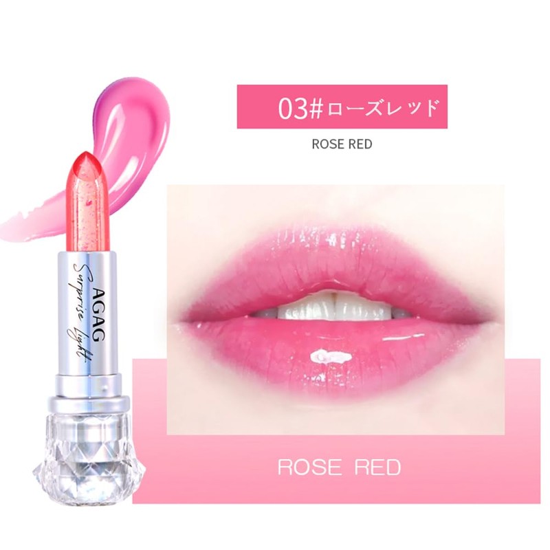 SNS Popular Jelly Lipstick, Color Changing Lips, Changing Color Lipstick, Temperature Changing Lipstick, Golden Cover Lipstick, Fashion Lip Gloss, Crystal Jelly Lipstick 03# Rose Red