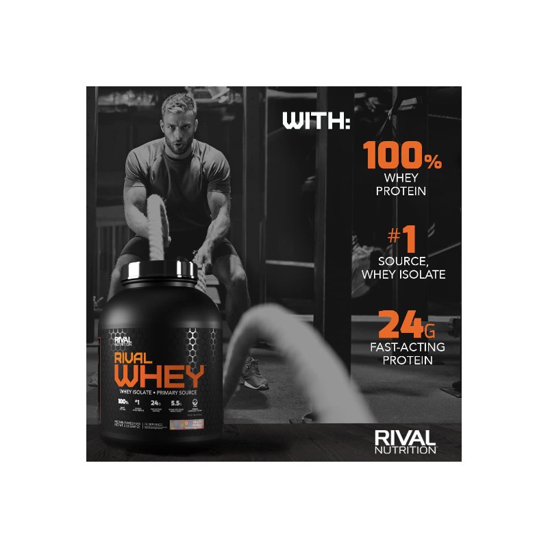 Whey is amongst the most popular protein sources for athletes - and for good reason. Whey proteins are highly digestible, rich in all the essential amino acids (including the three BCAAs), and have a thin consistency that is exceptionally drinkable. RIVALWHEY's 100% whey protein recipe blends high-purity whey isolate (primary protein source, BTW), ultra-filtered whey concentrate, and speedy whey hydrolysate to provide an exceptional balance of clean macros, great taste, unsurpassed quality, and bang for your hard-earned buck. So good it should have been called UNRIVALED WHEY.
