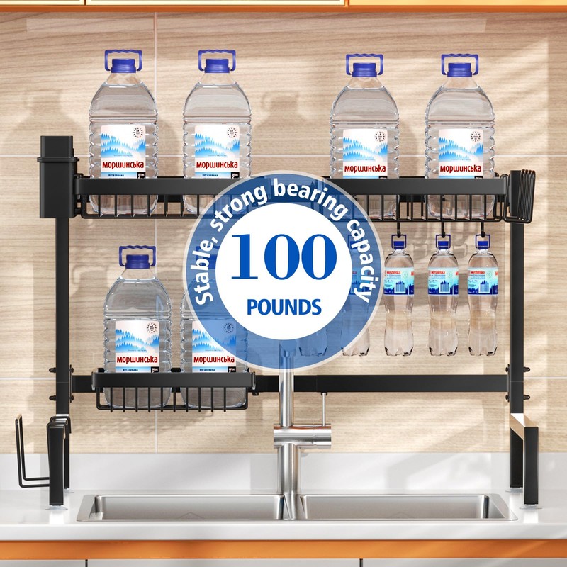 - ⭐【Good size】Rack dimensions 35.4"L x 11"W x 20.5"H, adjustable to fit most sinks. Ensure faucet is under 16.1" high and cabinet bottom to counter top height is at least 25.6". Please note potential 0.4-0.8 inch measurement error, so measure carefully before purchasing.