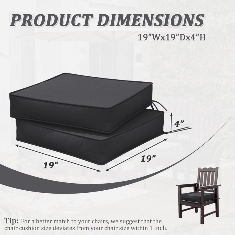 • 🔍 Perfect Size - Outdoor chair cushions set includes two generously sized outdoor chair cushions (19” L x 19” W x 4” H). To maximize your relaxation experience, be sure to measure your seating area accurately—perfect fit ensures optimal comfort and enhances your outdoor aesthetic.