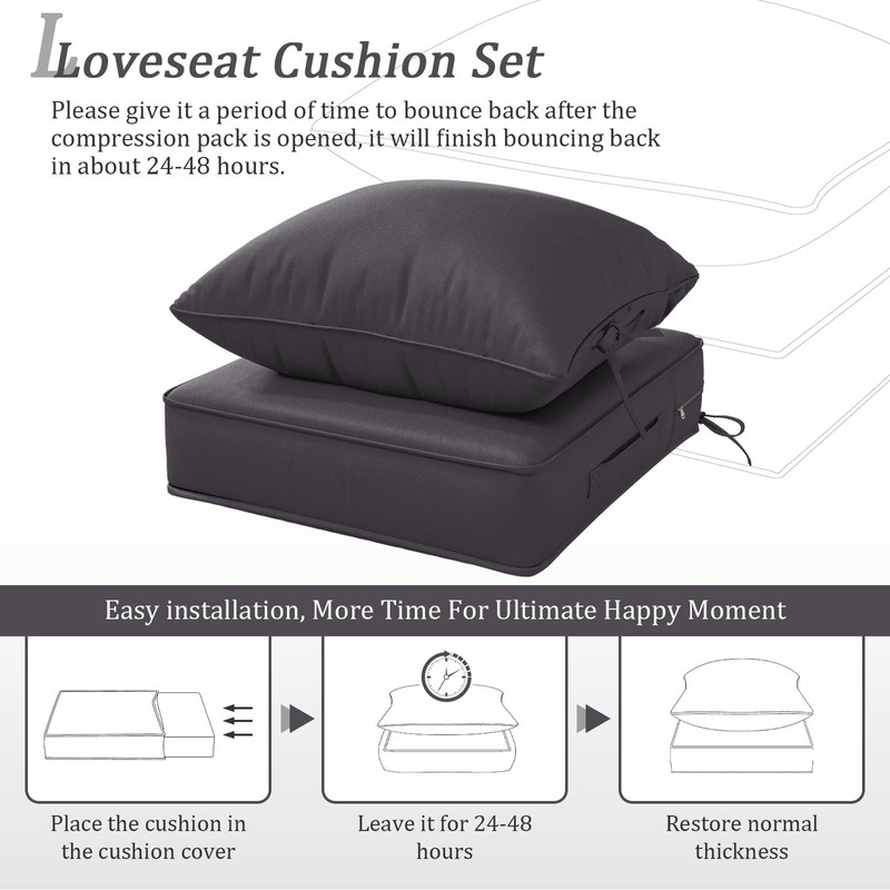 - 💝 Deliveries-Outdoor cushion set is vacuum compressed for delivery, which may result in the cushions not appearing particularly fluffy when first unpacked. It is normal for there to be wrinkles upon receiving the package. Please place the cushions in a ventilated area or in the sunlight and pat them gently; they will return to their fluffiest state within approximately 12 to 42 hours.