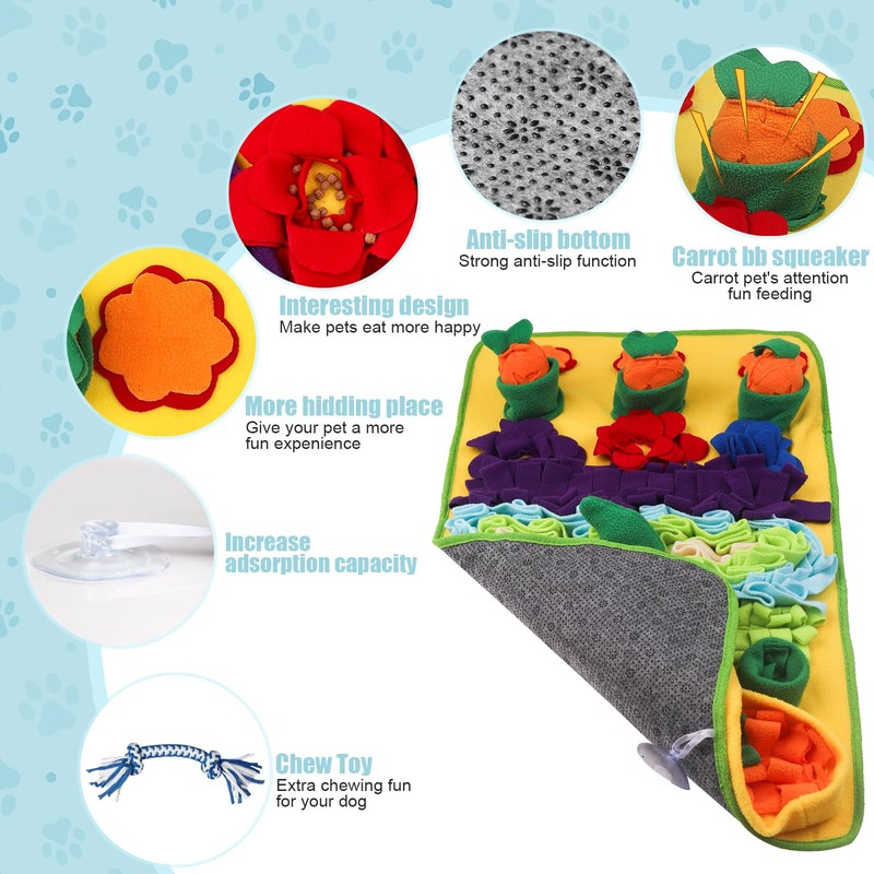 - 【Fun Activities for Dogs】Dog enrichment toys for large dogs contains 8 different nosework game to hide food. Also set up 4 carrot BB squeakers & 1 chew toy can stimulate the dog's interest, train the sense of smell, keep them busy and avoid your dog being bored and engaged in destructive behavior