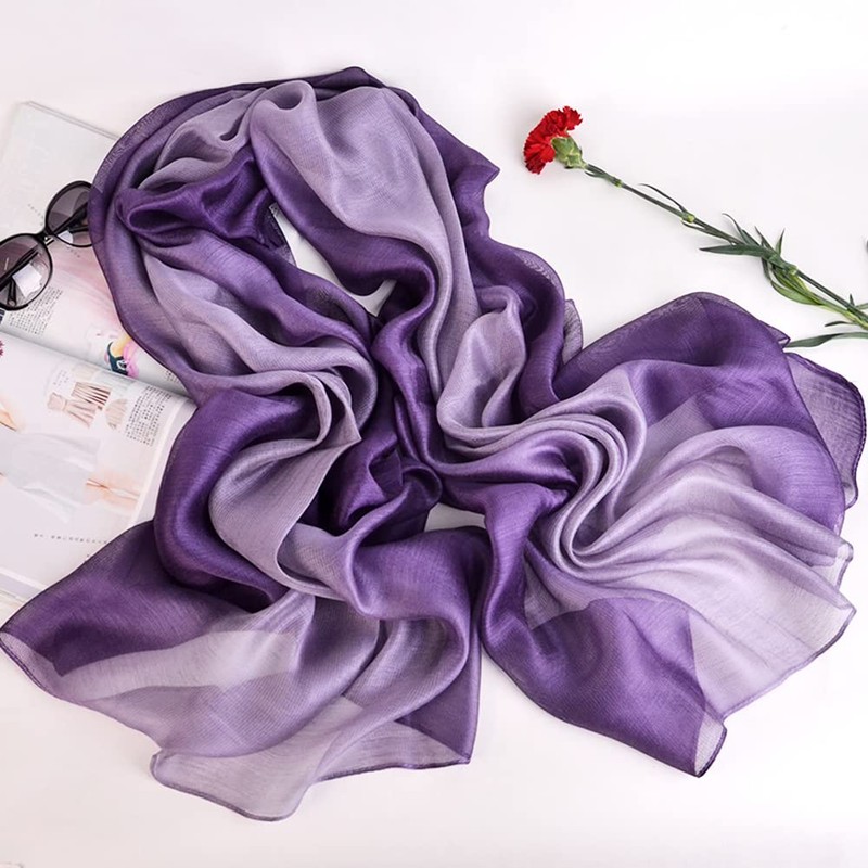 SNUG STAR Cotton Silk Scarf Elegant Soft Wraps Color Shade Scarves for Women (Gradient - Light purple)