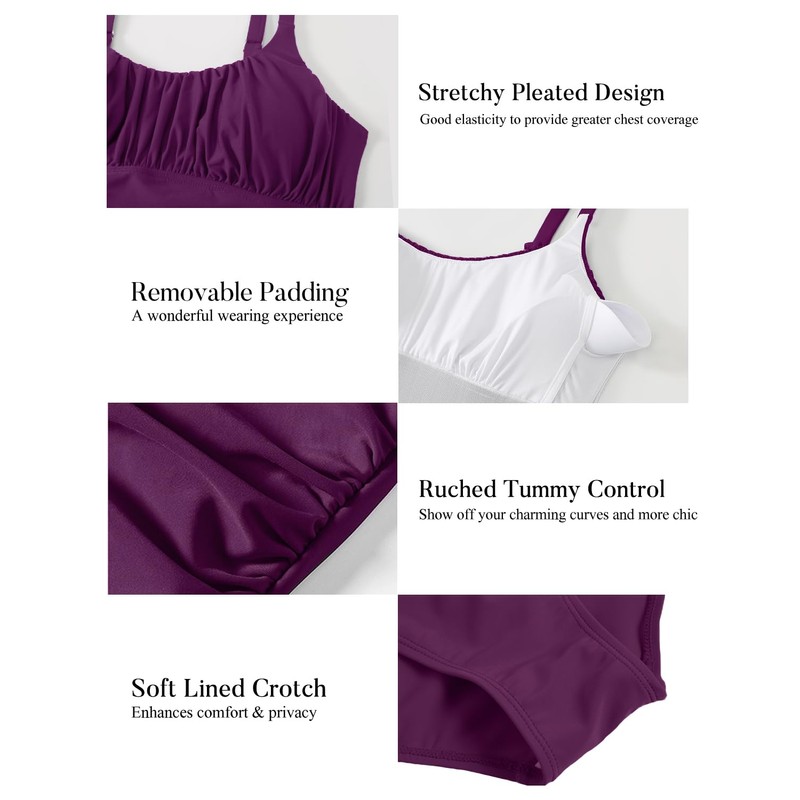 - Design: The torso of our swimsuit is designed with ruched pattern, which can hide your tummy imperfections perfectly, make you look slimmer and increase your confidence, making you more alluring, chic and flirty.