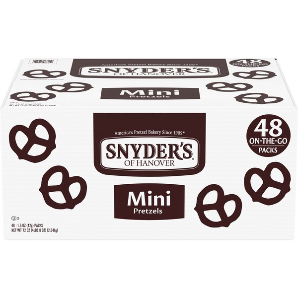 - 48 SINGLE-SERVE BAGS: 1.5-ounce individual bags of Snyder’s Mini Pretzels are great at school, at home or to go