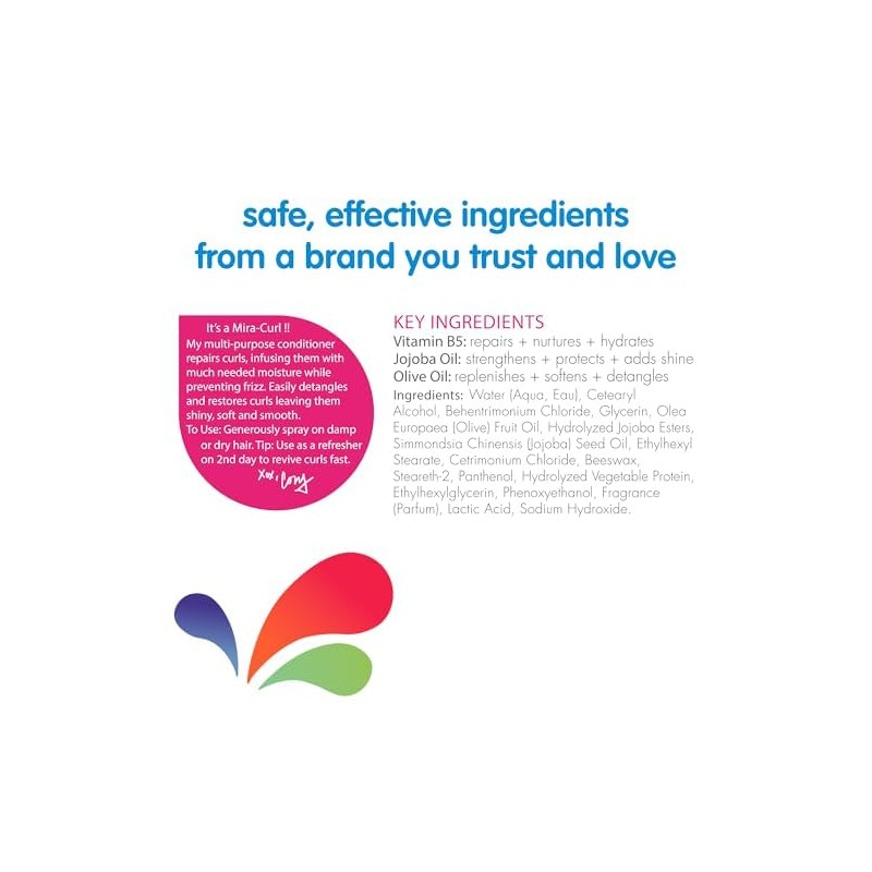 - Gentle & Nourishing Care: We've enriched our leave in conditioner for curly hair with Keratin, Vitamin B5, Olive Oil, & Jojoba Oil; These help repair, strengthen & protect your child's curls, leaving them hydrated, defined & healthy-looking