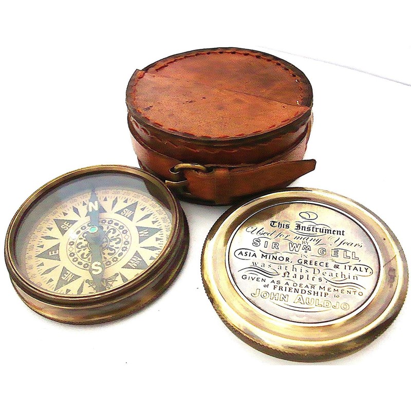 - Kompass Größe: 4 CMX1 CM. Ledertasche: 8 x 7 cm. Messing Kette Größe: 70 cm