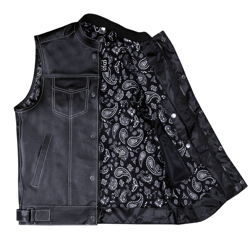 SOA Men's Premium Leather Motorcycle Vest with Biker Club Concealed Carry Gun Pockets w/Armor Paisley White 3XL