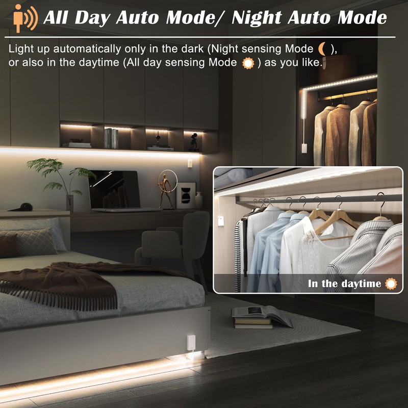 SOAIY SOAIY Set of 2 LED Strips 2M Light Strip with Motion Sensor Battery Operated Cabinet Lighting LED Strip Day/Night Mode Stair Light for Kitchen Wardrobe Hallway Stairs Bed Bedroom Warm White
