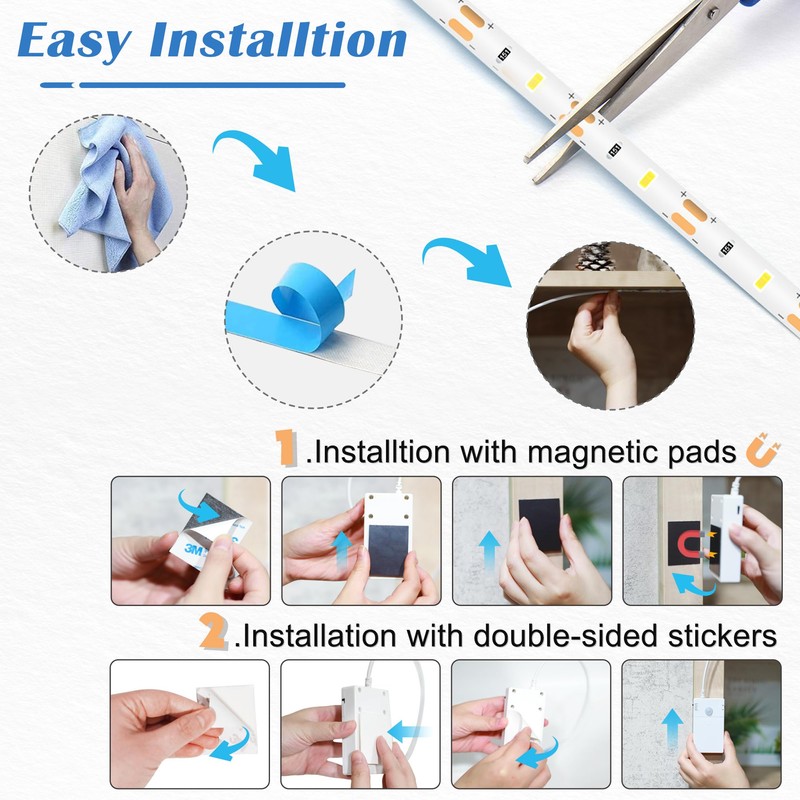- ???[Einfache Installation Lichtleiste, keine Steckdose erforderlich] Den zuschneidbaren biegsamen LED-Streifen bringen Sie dank selbstklebender R??ckseite flexibel und schnell an jeder glatten Oberfl?che an. Das Batteriefach mit PIR-Bewegungssensor bringen Sie per Magnet-Klebepads ??berall hin und schnell wieder bei Batteriewechsel abnehmbar.