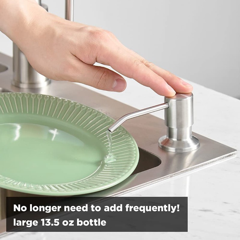 Soap Dispenser for Kitchen Sink Brushed Nickel, Refill from The Top, Stainless Steel Built in Sink Soap Dispenser with Large 13.5 Ounce Bottle 2309SN