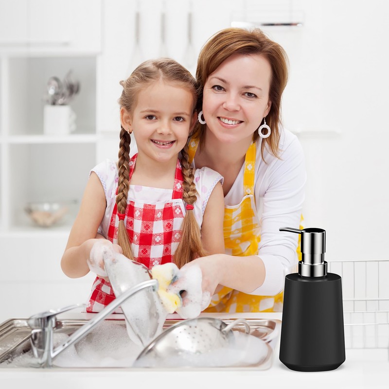 - HANDS & DISHES - Labeled dispensers clearly distinguish hand soap from dish soap with elegance.