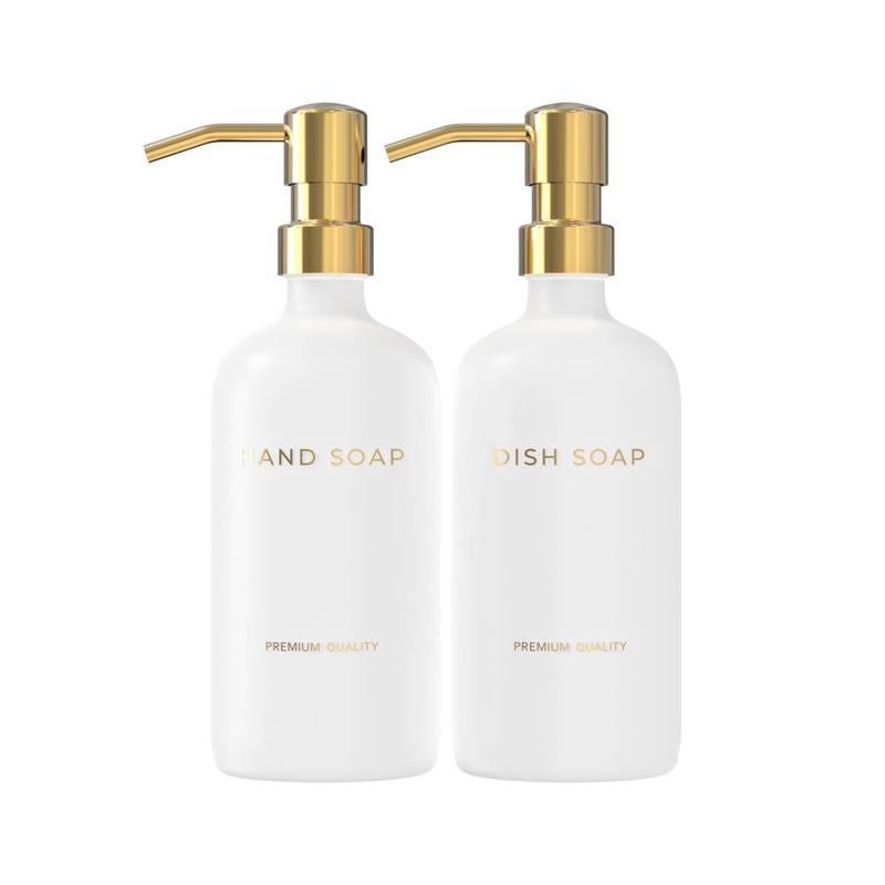 - Luxury soap dispenser set: contains two 500 ml premium glass bottles (16.9 oz) with 2CC stainless steel pumps