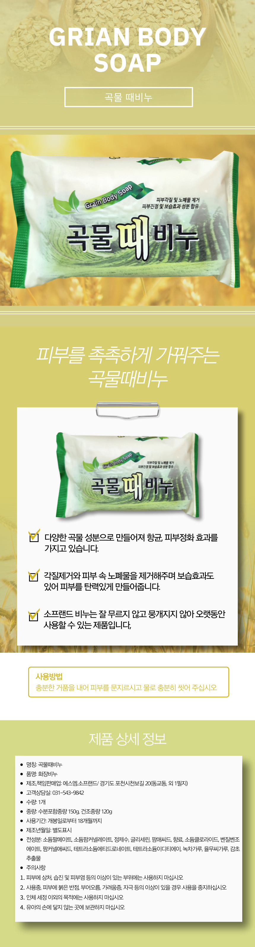 소프 랜드 천연 곡물 때비누 150g 1입