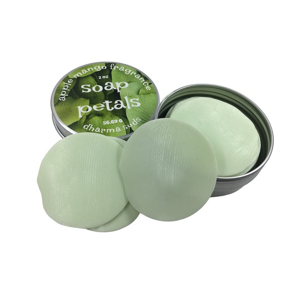 soap petals screw metal can 2 oz Handmade soap. Use as you need, practical way Yo carry your personal soap and use as you need at public places that do not have soap available Great for picnics or camping Carry it always in your bag and have ready as you need Tin can with screw cap 2 oz Apple mango fragrance glycerin soap