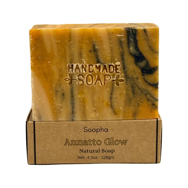 SOAPHA Annatto Glow – Handmade Natural Soap Bar with Organic Oils & Mica | Antioxidant-Rich, Vegan, All Natural, Gently Exfoliating | Golden Botanical Skincare | 4 oz (1)