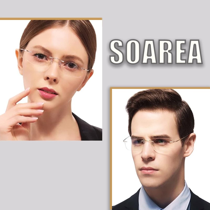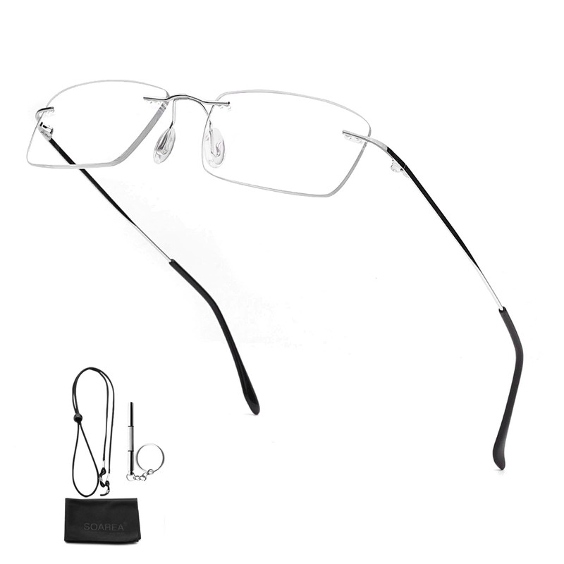 [Soarea] 老眼鏡レディース メンズ おしゃれ 老眼鏡 ブルーライトカット 超軽量フレームレス老眼鏡 携帯 男女兼用リーディンググラス 細かな作業 DIY 縫製 読書用大きく見える (シルバー, 1.0)