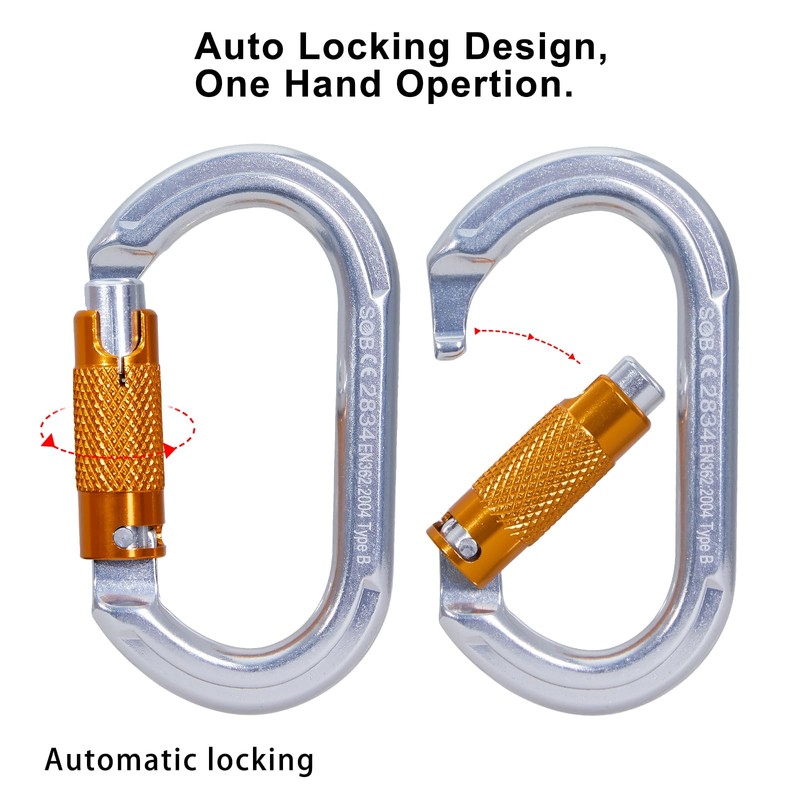 - CE Certification - Locking carabiner clips have passed the CE EN362 standard certification, The long axis of each lock is rated breaking 22KN (4946lb), the minoraxis breaking load 7KN (1575lb), the unlocking breaking load 8KN (1800lb)
