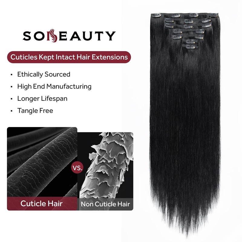 - High Quality Real Human Hair Extensions: SOBEAUTY clip in hair extensions use 100% remy human hair, which is soft and natural, compared with synthetic hair, it fits perfectly with your own hair. Easy to use, you can experience salon-like effects even at home