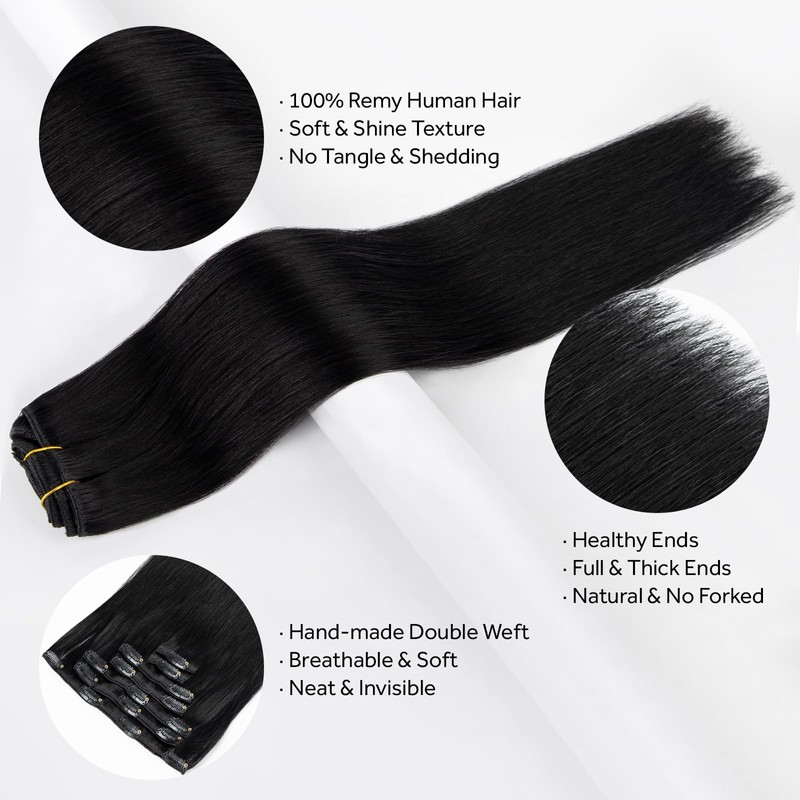 SOBEAUTY Clip in Hair Extensions, Real Human Hair Extensions, 100% Human Hair Remy Natural Hair Double Weft, 7 Pcs 120g Volume Invisible DIY Full Head Hair Extenion (Jet Black#1 20 inch)