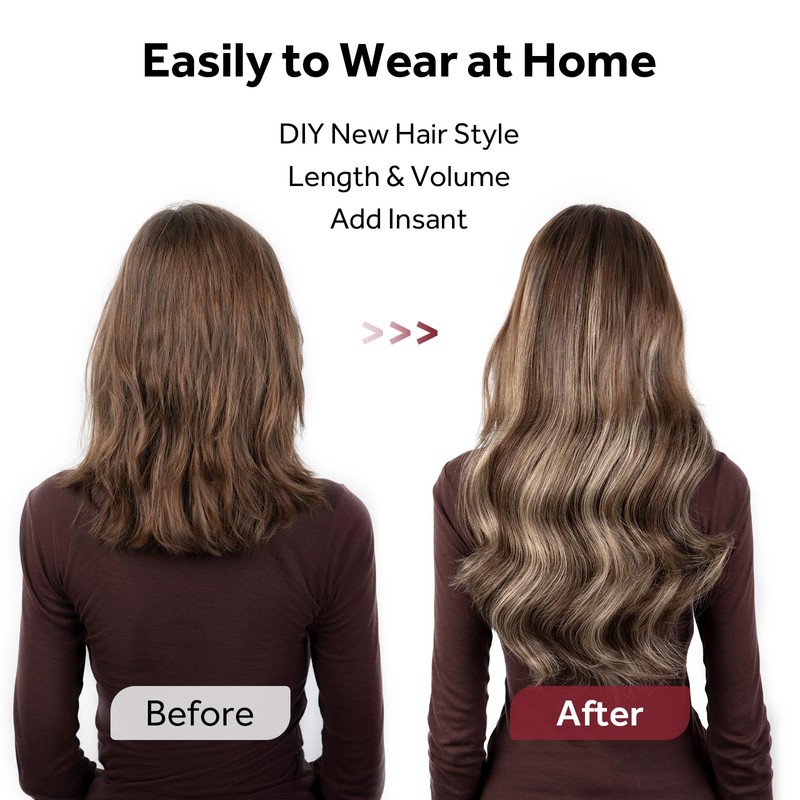 - Convenient & Easy Wearing: Stainless steel clips are not easy to fall off and will not damage your hair and scalp. Easily to put on and off by yourself in 10 mins. Perfect for daily use or special occasions. We adopt real remy human hair with advanced sewing technology, that the connection is flatter and firmer, not easy to fall off