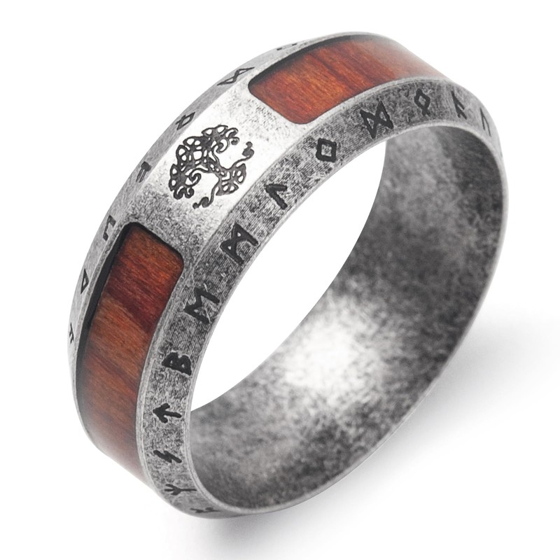 • 🌟DESIGN: Cool norse ring features viking runes,tree of life symbol,vintage silver treatment; Attractive and eye-catching,great workmanship,comfortable fit,perfect choice for daily wear.