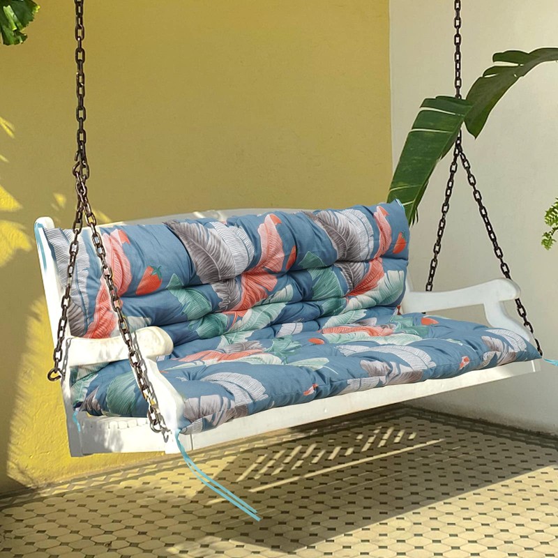 SOBOANT Porch Swing Cushions, Outside Bench Cushion with Backrest, 2-3 Seater Swing Cushion Replacement with 8 Ties, for Patio Garden and Backyard (Hawaii,60 * 40 in)