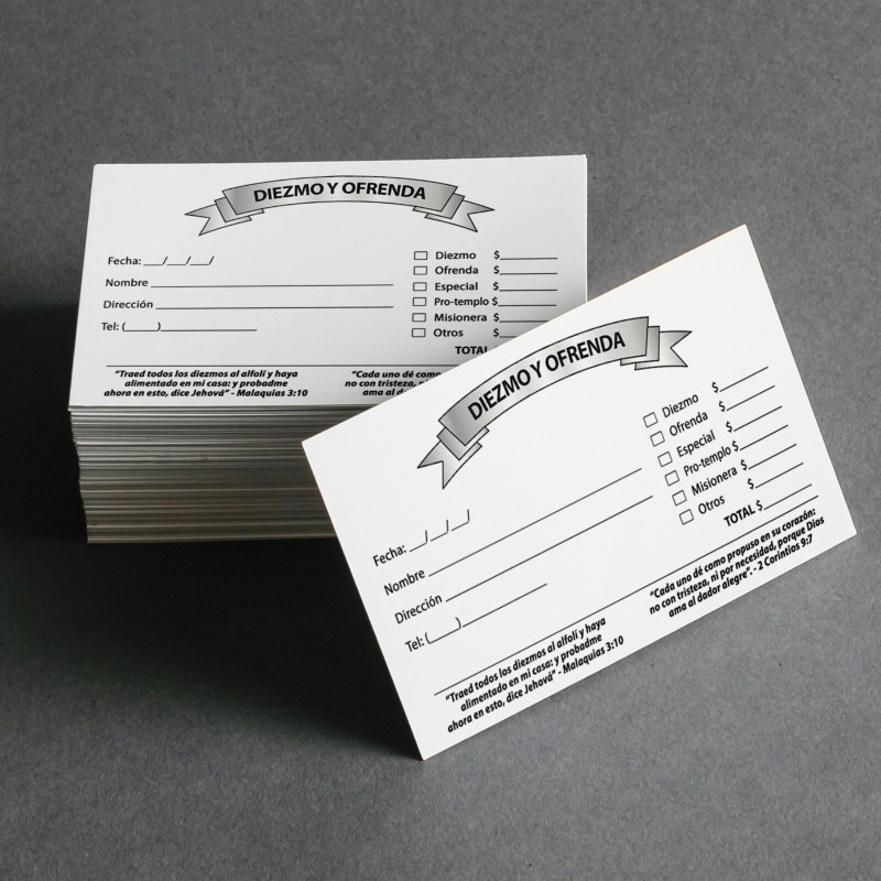 Sobres de tamaño #6 3/4. Viene impreso dos versículos. Uno para el diezmo : Malaquias 3:10 "Traed todos los diezmos al alfolí y haya alimento en mi casa; y probadme ahora en esto, dice Jehová" Y un versículo para la ofrenda : 2 Corintios 9:7 "Cada uno dé como propuso en su corazón: no con tristeza, ni por necesidad, porque Dios ama al dador alegre" Ademas de todos los datos que pueden observar en la imagen puesta #tratados cristianos #biblia #bible |