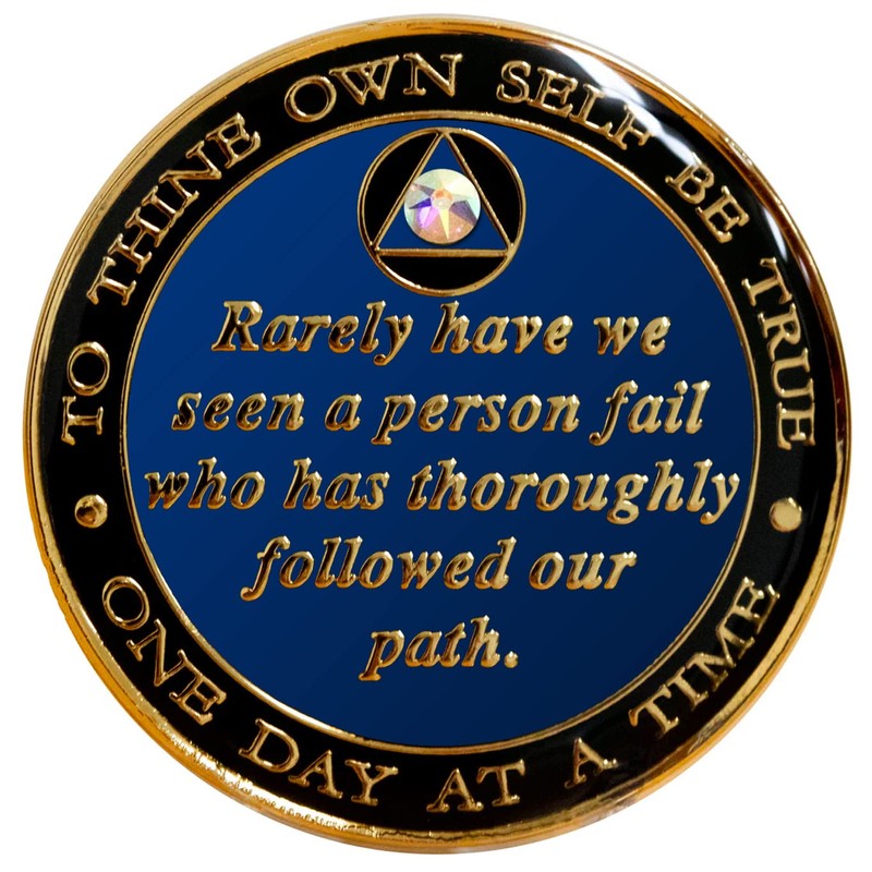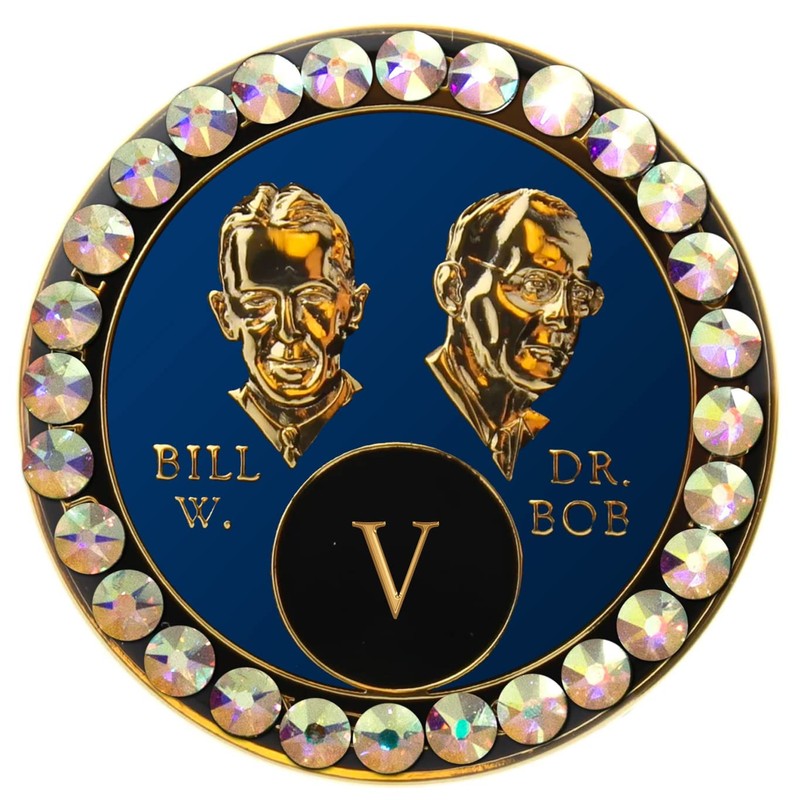Sobriety Chip AA Blue Bill & Bob Triplate Aurora Borealis Bling (5 Year)