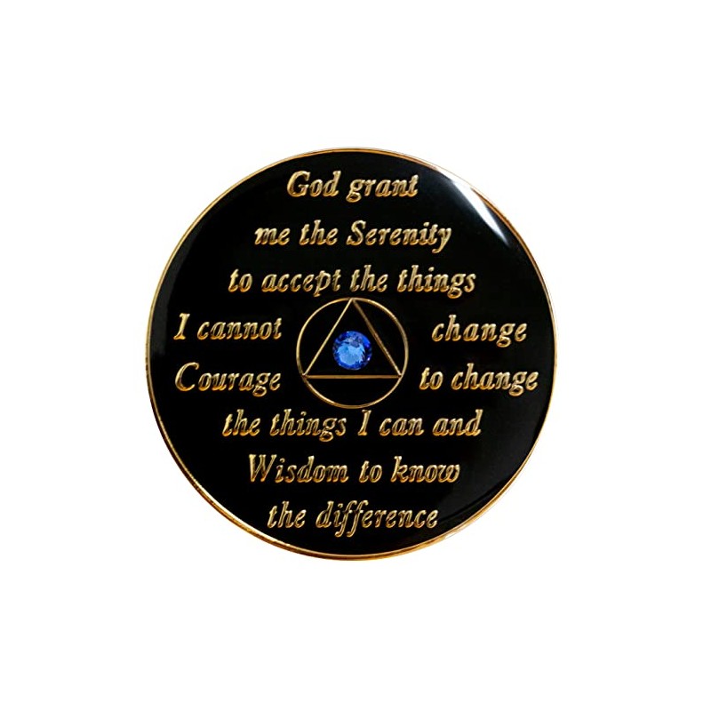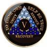 Sobriety Chip AA Blue Transition Bling Crystallized Black Triplate (5 Year)